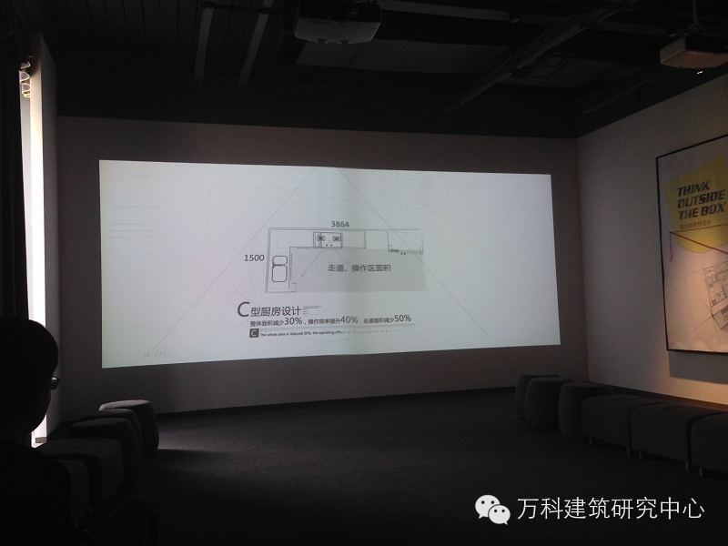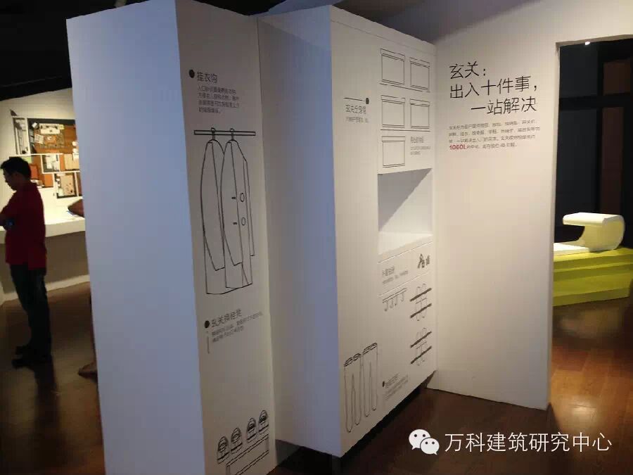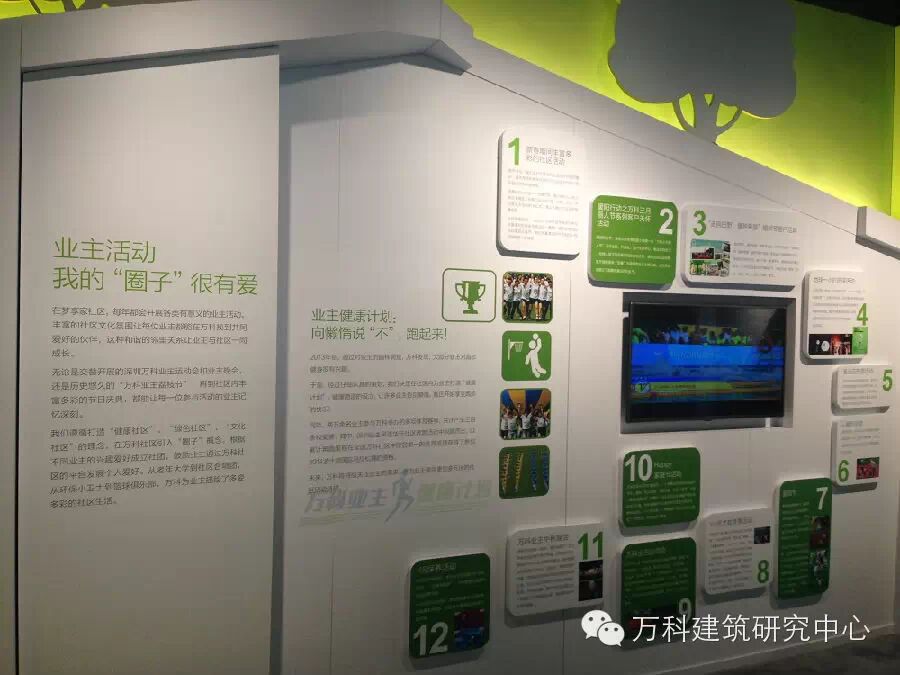 万科一改传统模式,将“幸福系•梦享家”中置入展览空间的流线设计,共分为四个模块,向客户展现产品的研发过程、设计团队、技术改进、产品升级等内容,实现过程中自然而愉悦的信息传递。第一模块从企业文化和设计团队着力,依次为“万科文化-运动员设计师-设计师如何将房子设计的更完美”;第二模块为“社区”;第三模块为“户内”;第四模块为“服务”。整条流线设计把“看楼盘”变成了“欣赏产品”,无需工作人员用过多的言辞向客户进行信息灌输,只需有序的引导和提示,客户自然会被产品的建造过程所吸引。